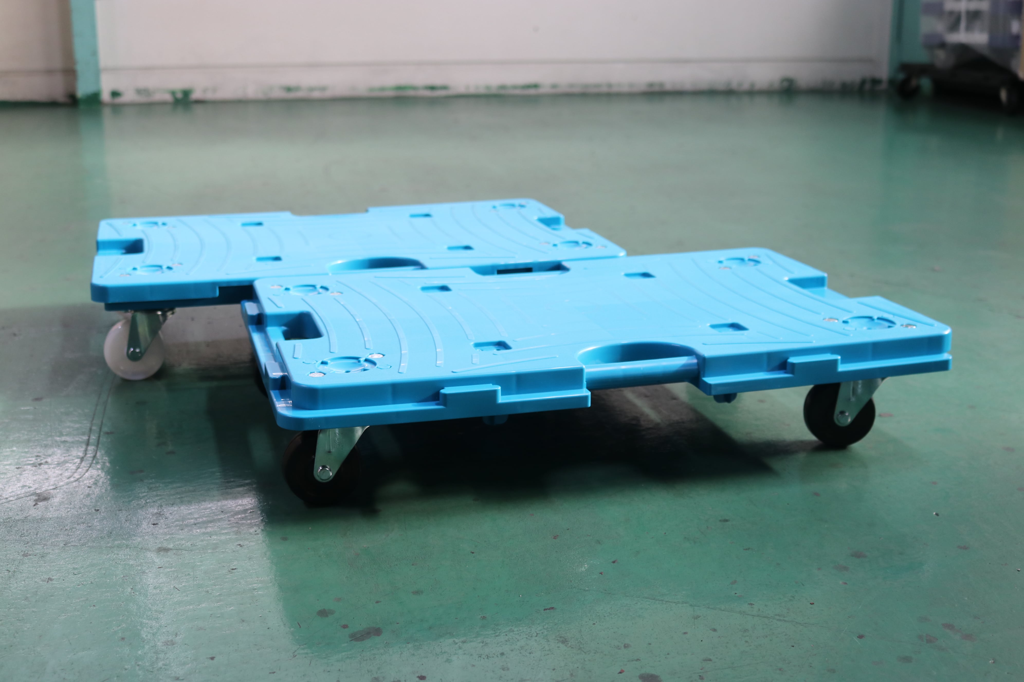 工場、倉庫での実績多数の台車です。 奥にある商品を取り出したい時など、保管・移動に便利。 縦横連結可能で、効率的な運搬・保管を実現します。 ◇縦横連結可能で、収納スペースに合わせて調整できる ◇持ち手が4か所あり、どの方向からでも操作可能 ◇ナイロンキャスターは硬度が高く丈夫で長持ち、始動性がよく重い荷物も動かしやすい ◇ゴムキャスターは弾力性に富み、凹凸のある路面も安定して走行 ◇防水性、耐油性に優れる(ナイロンキャスター) ◇スタッキング可能(8台まで)で保管も省スペース ◇ストッパー付(オプション)も選択可能 運搬・保管効率がアップする、日本製の高品質台車です。 【型番】 NTRL-N65TB(ナイロンキャスター) NTRL-G65TB(ゴムキャスター) 【サイズ】 約幅600×奥行400×高さ115mm 【材質】 本体:PP(ポリプロピレン) キャスター:ナイロン または ゴム 【製品重量】 約3kg 【耐荷重】 100kg 【キャスター】 φ65mm 自在×4輪 ※φ75mm(ナイロン・ゴム) ストッパー付も対応可能 【入数】 4台 【生産国】 日本 【備考】 完成品 *お使いのモニター環境により、実際の商品の色味と異なって見える場合がございます。 *表記サイズは製品により実物と誤差が生じることがございます。 *改良のため、予告なく仕様、デザイン、価格の変更または販売中止・生産中止となる場合がございます。