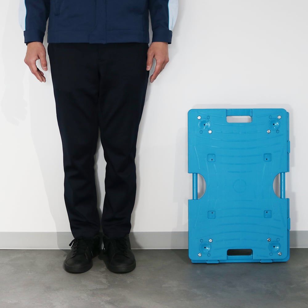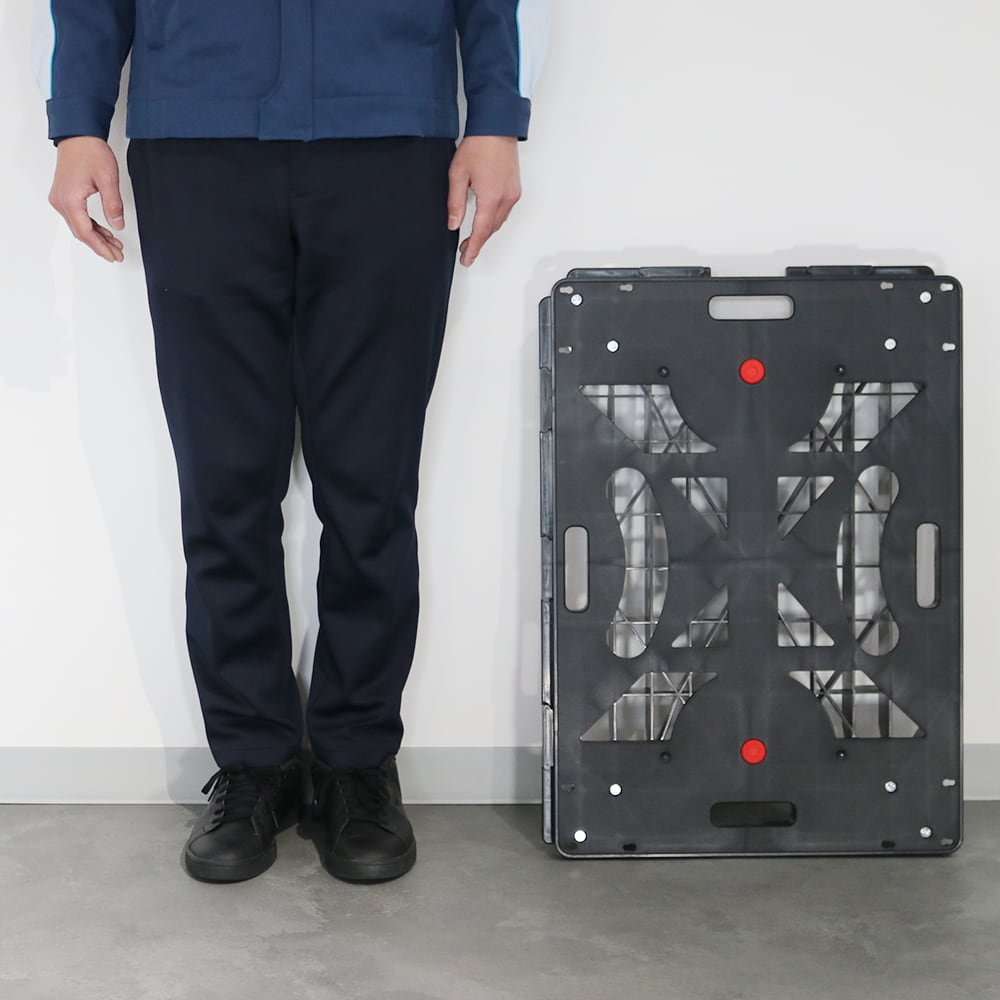 4枚連結でパレット用台車になり、運搬・保管効率が大幅にアップします。 小回りが利くので移動効率も向上。 省スペースにも対応できる便利な台車です。 ◇縦横連結可能で風車連結も可能(1100×1100mmパレットサイズ) ◇耐荷重150kgでしっかり運べる ◇持ち手が4か所あり、どの方向からでも操作可能 ◇滑り止めゴム2個付で荷物が安定 ◇ゴムキャスターは弾力性に富み、凹凸のある路面も安定して走行 ◇スタッキング可能(8台まで)で保管も省スペース ◇コーナーガード付・ストッパー付(オプション)も選択可能 運搬・保管効率がアップする、日本製の高品質台車です。 【型番】 NTRB-G75BK 【サイズ】 約幅700×奥行500×高さ120mm 【樹脂板サイズ】 700×500mm 【材質】 本体:PP(ポリプロピレン) キャスター:ゴム 【製品重量】 約4kg 【耐荷重】 150kg 【キャスター】 φ75mm 自在×4輪 ※ストッパー付も対応可能 【生産国】 日本 【備考】 完成品 *お使いのモニター環境により、実際の商品の色味と異なって見える場合がございます。 *表記サイズは製品により実物と誤差が生じることがございます。 *改良のため、予告なく仕様、デザイン、価格の変更または販売中止・生産中止となる場合がございます。