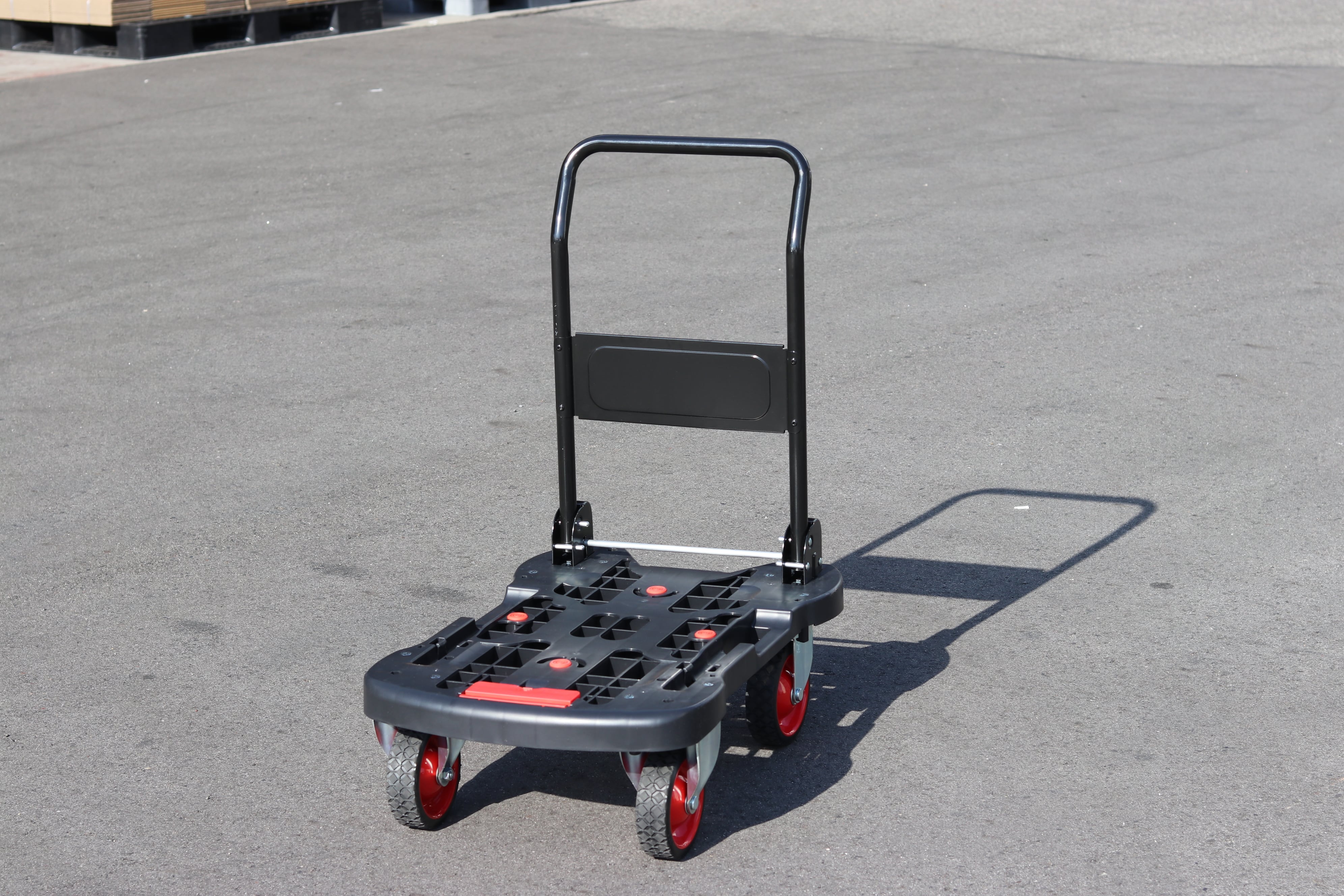 キャリー機能搭載の折りたたみ式ハンドル台車です。 ショッピングやゴミ出し、重量物の運搬、アウトドアなど様々なシーンで活躍。 ハンドルを収納すればフラットになり、車のトランクや玄関の隙間にもスッキリ収納できます。 ◇女性のために開発された、軽くておしゃれなデザイン ◇移動時に便利なキャリー機能搭載 ◇ハンドルロック付・ハンドルストッパー付で安全 ◇持ち手が2か所あり、持ち運びも楽々 ◇ゴムキャスターは衝撃吸収性・静寂性に優れ、床面への走行痕が発生しにくい 軽くて使いやすい、日本製の高品質台車です。 【サイズ】 ハンドル使用時:約幅440×奥行390×高さ800mm ハンドル折りたたみ時:約幅760×奥行390×高さ130mm 【材質】 本体:PP(ポリプロピレン)、ハンドル:スチール(メッキ)、キャスター:ゴム 【製品重量】 約3kg 【耐荷重】 80kg 【キャスター】 φ65mmゴム(前輪)自在×2(後輪)固定×2 【生産国】 日本 【備考】 完成品 *お使いのモニター環境により、実際の商品の色味と異なって見える場合がございます。 *表記サイズは製品により実物と誤差が生じることがございます。 *改良のため、予告なく仕様、デザイン、価格の変更または販売中止・生産中止となる場合がございます。