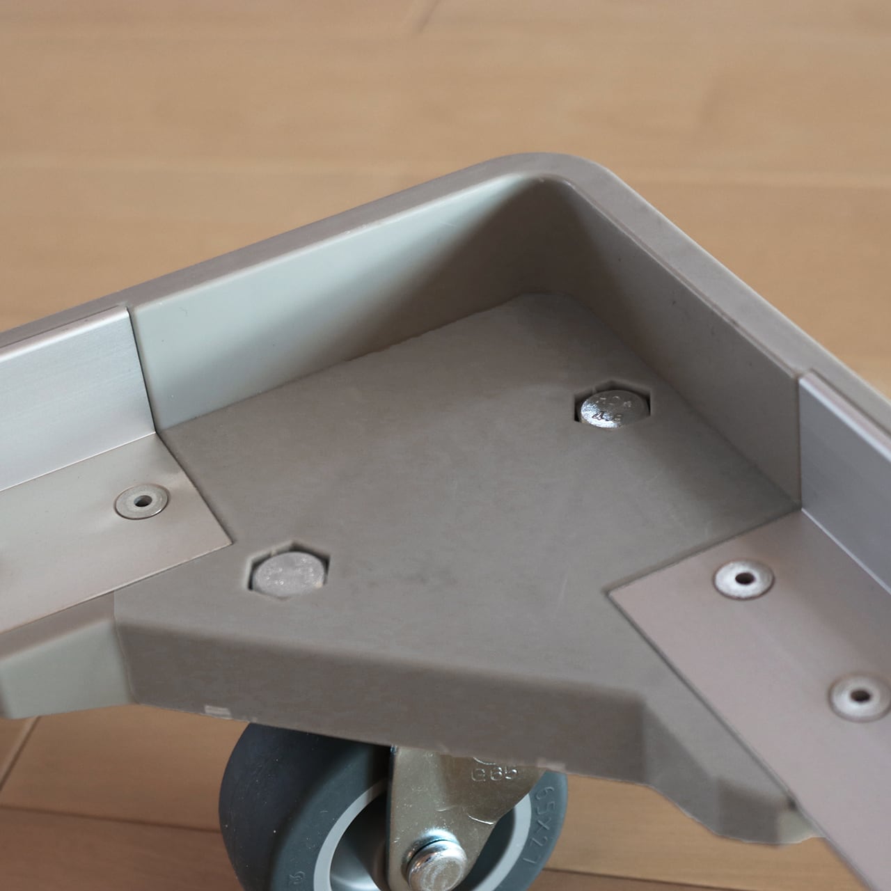 本体:アルミ、コーナー:PP(ポリプロピレン)、キャスター:エラストマー