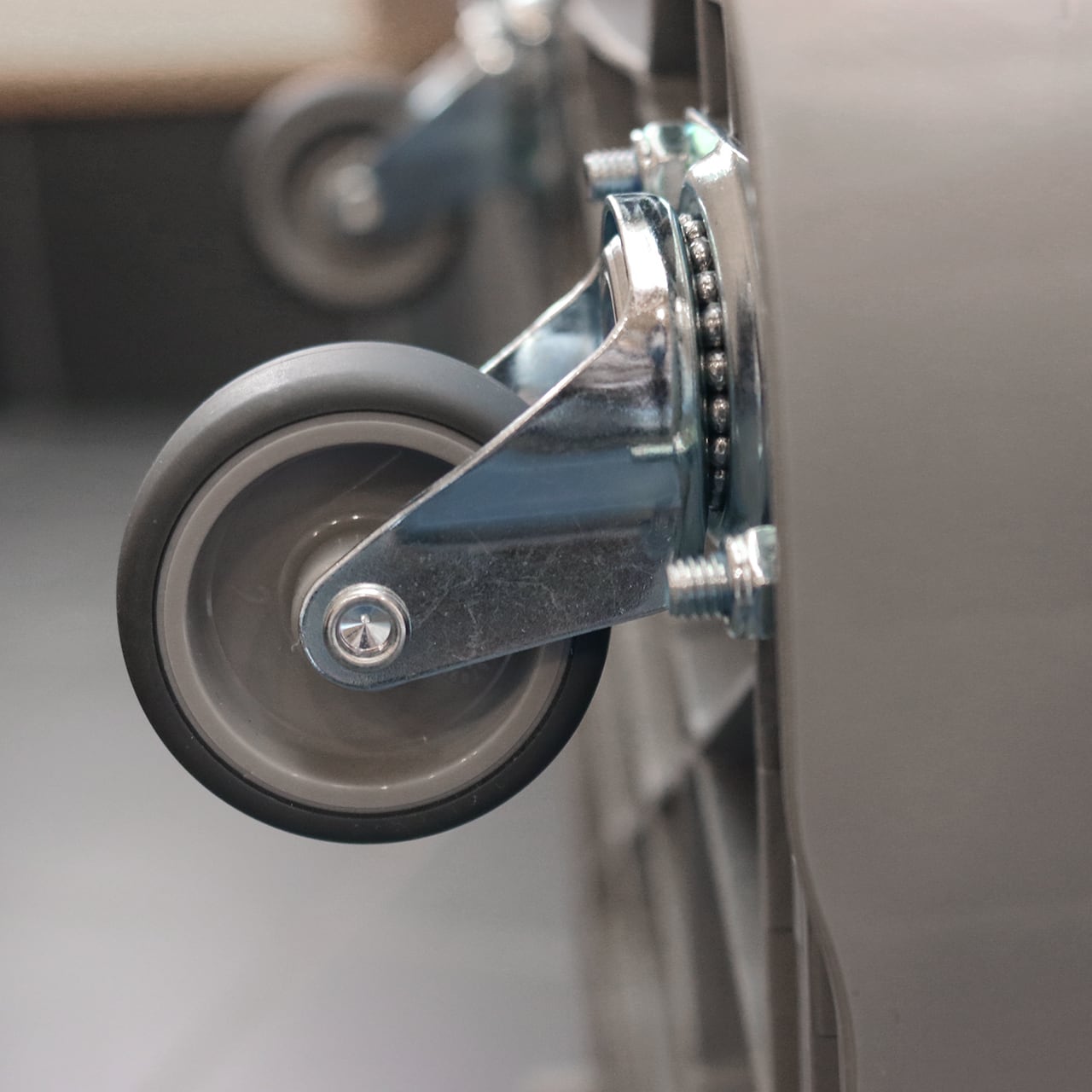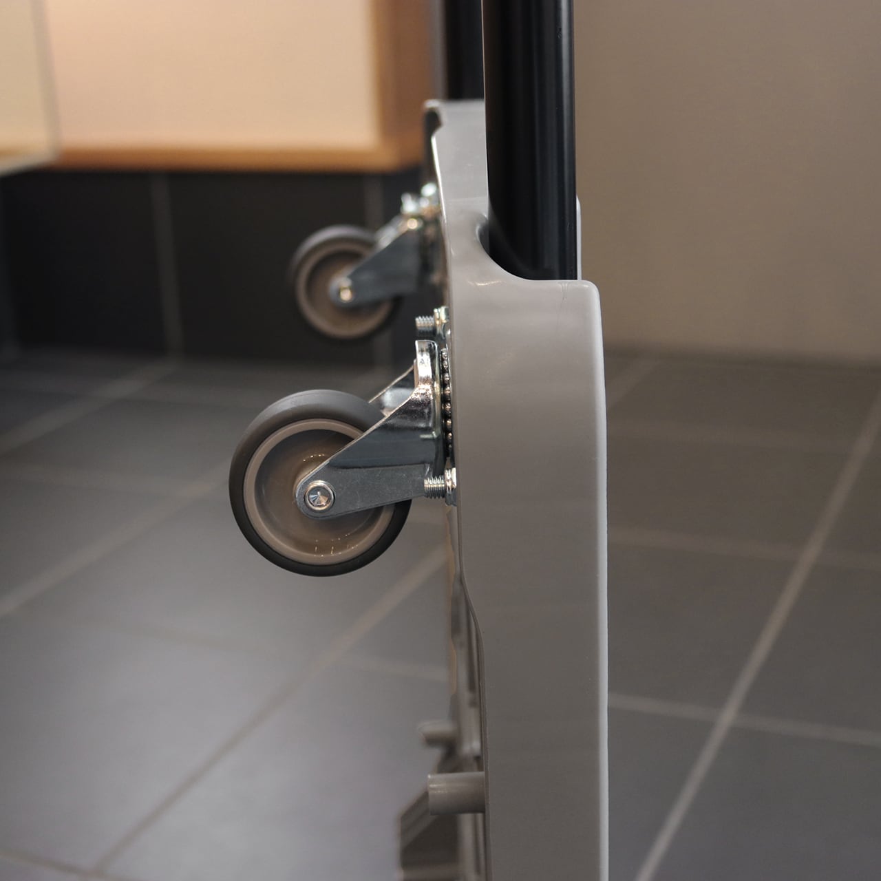 ◇エラストマーキャスターは衝撃吸収性・静寂性に優れ、床面への走行痕が発生しにくい