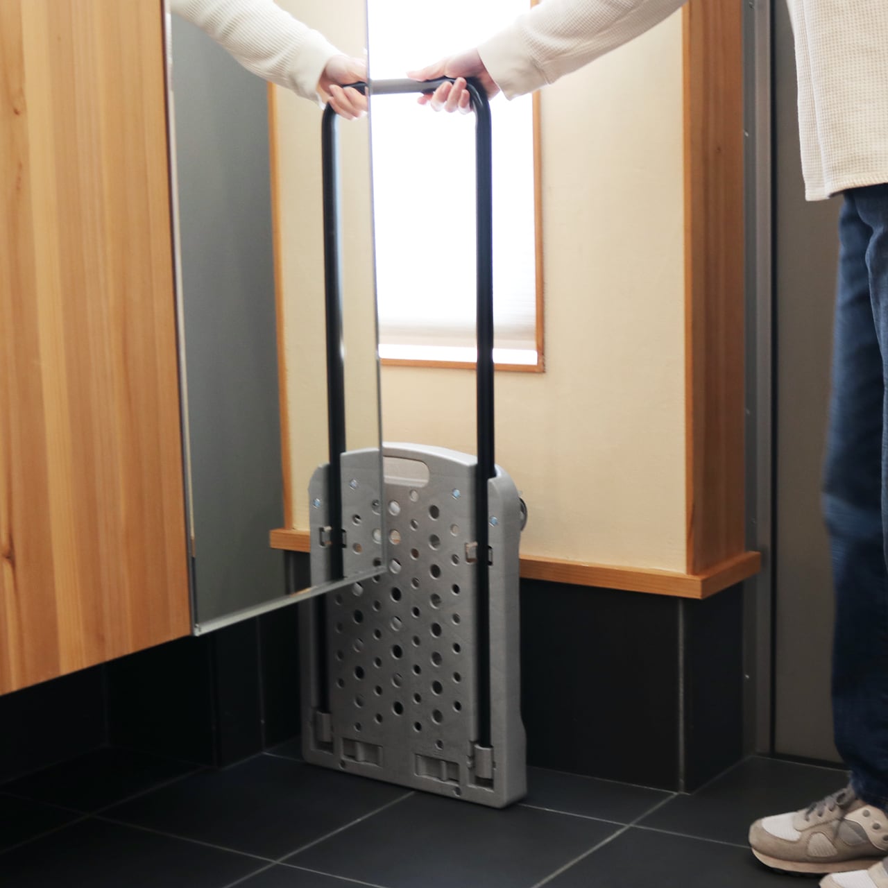 約2.8kgとハンドル台車としては最軽量クラスで、持ち運びも楽々。