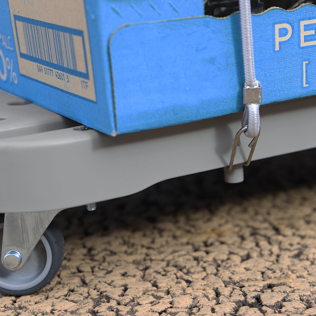 本体:PP(ポリプロピレン)、ハンドル:スチール(粉体塗装)、キャスター:エラストマー