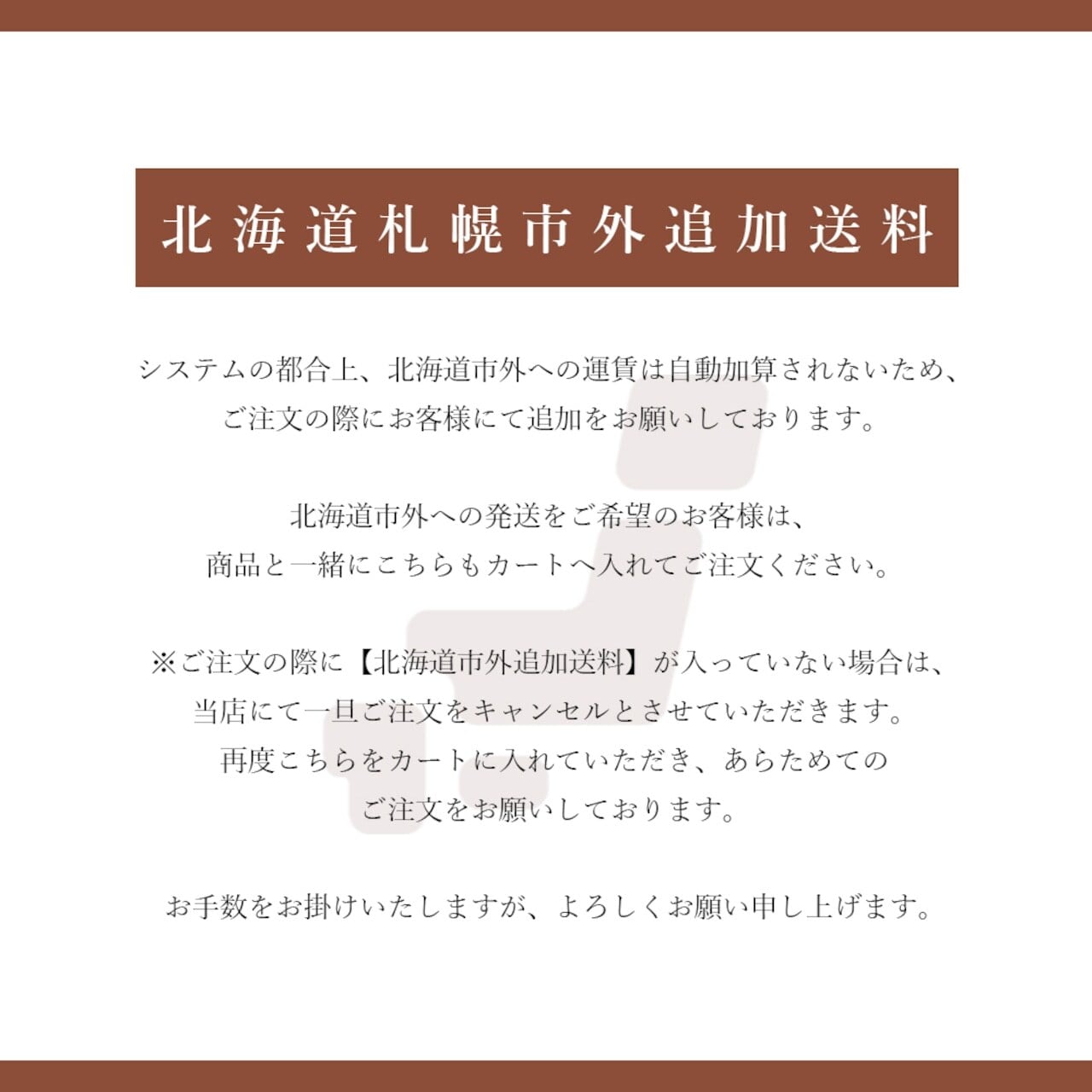 ※もし、ご注文の際に【北海道(札幌市外)送料】が入っていない場合は